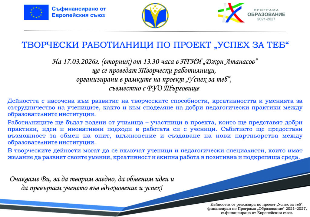 Проект:2024-1-BG01-KA122-SCH-000213063, "Мост към успеха "